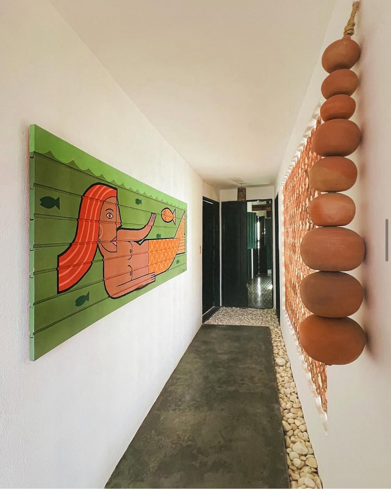 A Casa Patacho é um verdadeiro refúgio de beleza artesanal e expressão cultural. Seu interior é cuidadosamente decorado com peças de artesanato local, incluindo tapeçarias feitas à mão, xilogravuras autênticas e objetos únicos da região, que refletem o espírito do litoral alagoano. Além disso, a casa também valoriza a arte